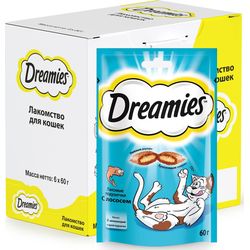 Лакомство Dreamies, подушечки с лососем, для кошек, 60 г x 6 шт