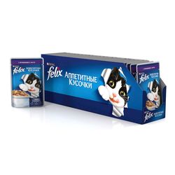 Консервы для кошек Felix "Аппетитные кусочки. Двойная вкуснятина", с лососем и форелью в желе, 85 г, 24 шт