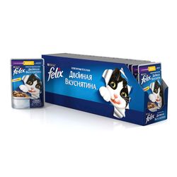 Консервы Felix для кошек "Двойная Вкуснятина. Говядина & Домашняя птица", 85 г х 24 шт