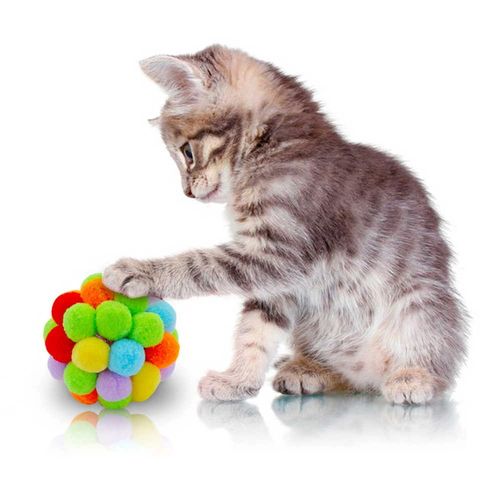 -?Мячик обклеен 50 мягкими мелковолокнистыми мини-шариками, кошки легко подцепляют их своими коготками.