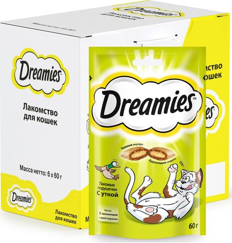 Лакомство для взрослых кошек "Dreamies" в виде подушечек с уткой - это вкусная добавка к ежедневному рациону. В состав входят важные для кошки питательные вещества, витамины и минералы, а значит, такое угощение приносит не только радость, но и пользу.Кошкам нравится разнообразие в питании и сочетание текстур, именно поэтому ассортимент вкусов, хрустящая текстура снаружи и нежный паштет внутри делают это лакомство необыкновенно вкусным. Вы можете давать лакомство Dreamies каждый раз, когда захотите побаловать любимца.
