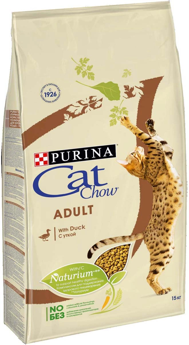 Корм сухой Cat Chow "Adult" - это полнорационный, сбалансированный корм, в котором есть все необходимое, чтобы жизнь вашей кошки была здоровой и естественно прекрасной. Корм отличается высоким содержанием домашней птицы и включает Naturium - особое сочетание волокон из натуральных источников, а также источник натурального пребиотика, который поддерживает здоровое пищеварение кошки. Это позволяет ей питаться с большей пользой. Корм содержит натуральные ингредиенты (петрушка, шпинат, морковь, цельные зерна злаков, цикорий и дрожжи).