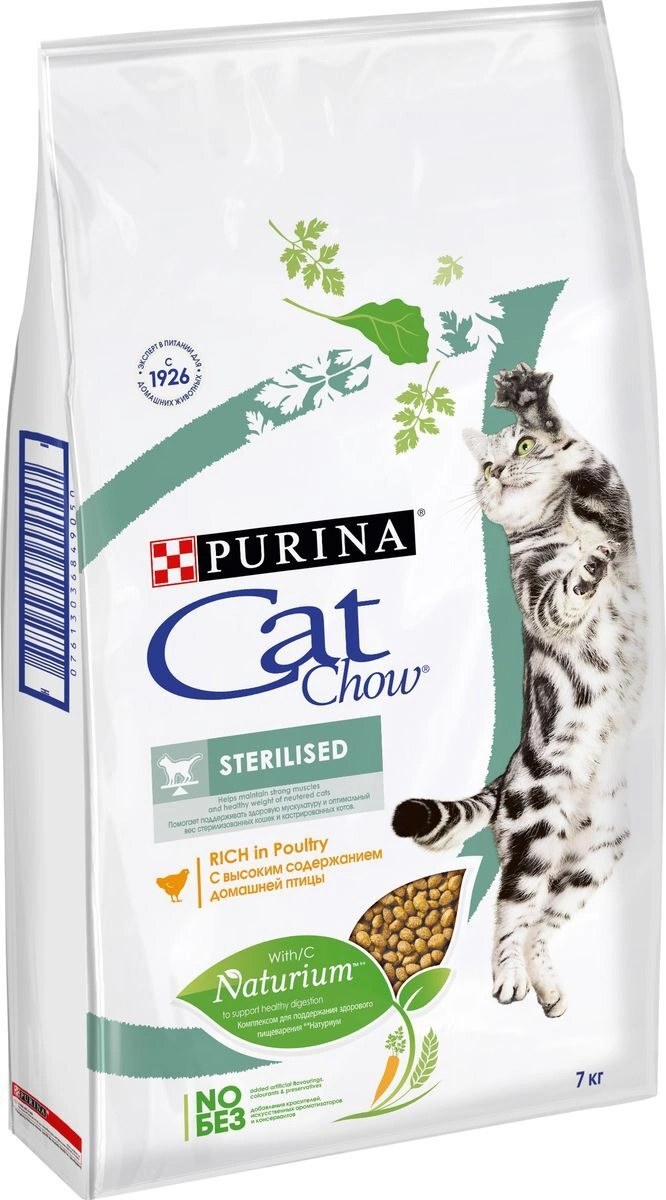 Ваша кошка - уникальное создание.Чтобы она продолжала радовать вас, Purina создала корм Cat Chow - корм с качественным белком и натуральными ингредиентами (петрушка, шпинат, морковь, цельные зерна злаков, цикорий и дрожжи).Он отличается высоким содержанием домашней птицы и включает Naturium -особое сочетание волокон из натуральных источников, а также источник натурального пребиотика, который поддерживает здоровое пищеварение кошки. Это позволяет ей питаться с большей пользой.Основываясь на нашей экспертизе с 1926 года, мы разработали полнорационный, сбалансированный корм Purina Cat Chow, в котором есть все необходимое, чтобы жизнь вашей кошки была здоровой и естественно прекрасной.Состав: