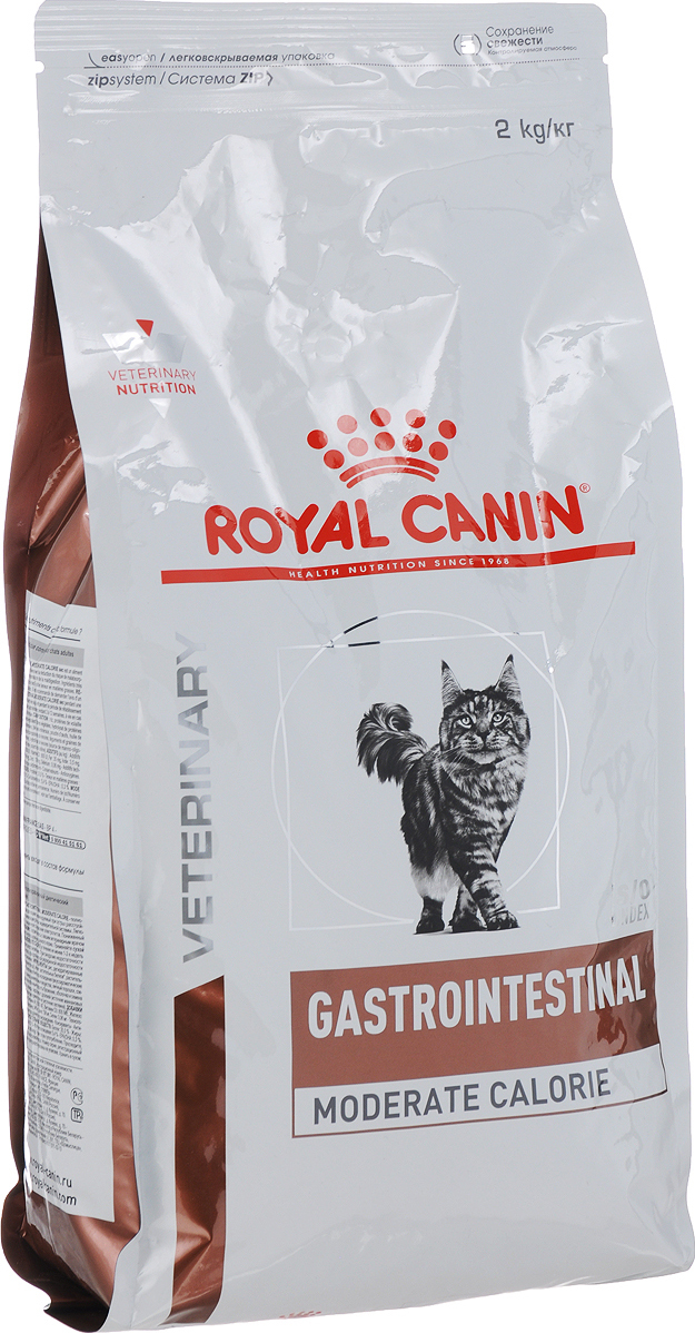 Сухой диетический корм Royal Canin "Gastro Intestinal. Moderate Calorie" для кошек c пониженным содержанием жира при воспалении кишечника и нарушении пищеварения. Показания: