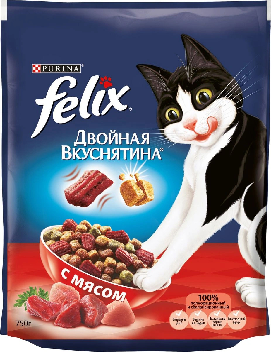 Felix "Двойная Вкуснятина" - новый сухой корм для кошек, который полностью соответствует потребностям вашего озорника. Восхитительное сочетание двух текстур в одной упаковке: хрустящие гранулы смешаны с мягкими кусочками для создания невероятного вкуса, перед которым невозможно устоять. Состав: злаки, мясо и продукты переработки мяса (мин. 4% мяса на базе восстановленного вещества), экстракты растительного белка, животные жиры, глицерин, продукты переработки растительного сырья, минеральные вещества, различные сахара, консерванты, дрожжи, витамины, красители, антиоксиданты.