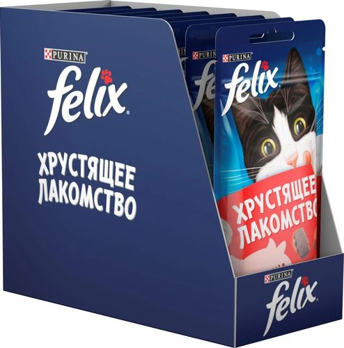 Чаще радуйтесь общению с вашим питомцем благодаря Хрустящему Лакомству Felix! Хрустящее Лакомство Felix - это дополнение к ежедневному рациону, с помощью которого Вы можете баловать Вашего питомца, когда Вам этого хочется. В каждой упаковке Вы найдете удивительные ароматные гранулы с восхитительным вкусом и аппетитной текстурой! И это еще не все! Felix Хрустящее Лакомство содержит белки, витамины и Омега-6 жирные кислоты для того, чтобы помочь Вашему питомцу быть счастливым и здоровым. Предложите Вашему питомцу другие вкусы Хрустящего Лакомства Felix - радуйтесь вкусному разнообразию вместе!