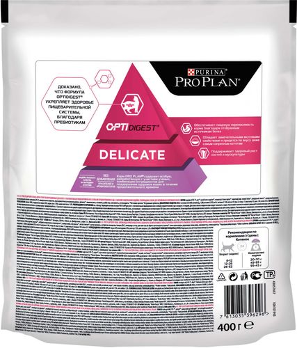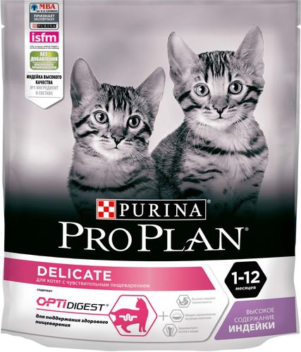 Корм сухой Pro Plan "Junior Delicate", для котят с чувствительным пищеварением - корм с высоким содержанием белка, сочетающий все необходимые питательные вещества, включая витамины С и Д3, а также омега-3жирную кислоту. Легко усвояемый корм для котят с чувствительным пищеварением. Обладает замечательными вкусовыми свойствами и придется по вкусу даже самым капризным котятам.