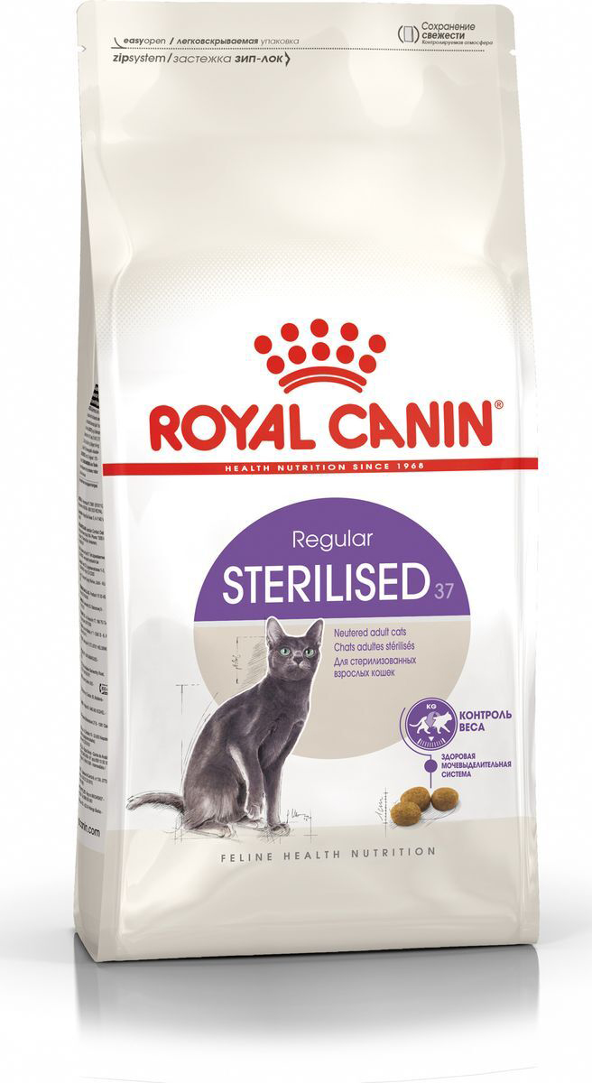 Сухой корм Royal Canin "Sterilised 37" - полнорационный сухой корм подходит стерилизованным кошкам в возрасте от 1 до 7 лет. Контроль потребления калорий. Корм Sterilised 37 ограничивает риск набора избыточной массы тела стерилизованной кошкой благодаря умеренному содержанию жиров (12%). L-карнитин способствует активной утилизации жиров.
