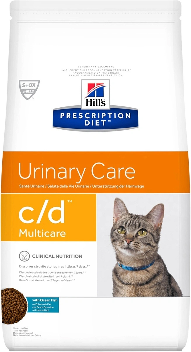 Hill’s™ Prescription Diet™ Feline c/d™ Multicare Urinary Care помогает поддерживать здоровье нижних мочевыводящих путей у кошек и предотвращать риск рецидива образования струвитных уролитов после их растворения.