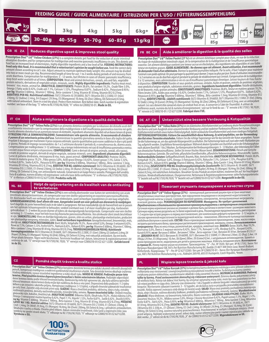 Hill’s Prescription Diet Feline i/d — высоко усваиваемый рацион, созданный специально для поддержания здоровья кошек с расстройствами пищеварения.