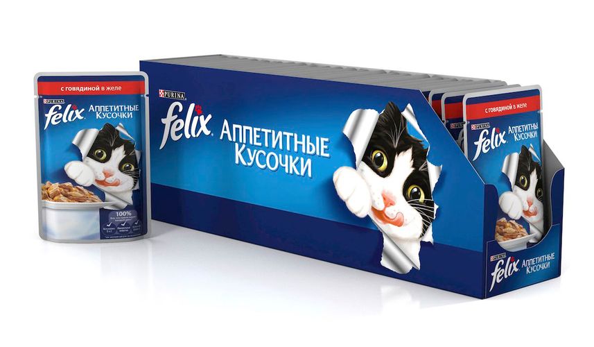 Felix "Аппетитные кусочки" - это совершенно особенный корм для кошек. У него такой аппетитный вид и аромат, словно его приготовили вы сами. Felix "Аппетитные кусочки" создан по специально разработанной рецептуре: это нежнейшие кусочки с мясом или рыбой, покрытые сочным желе. Ваш кот будет готов есть такую вкуснятину хоть каждый день - на завтрак, обед и ужин.