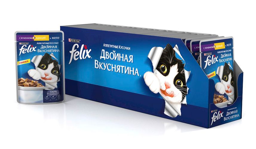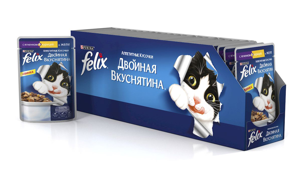 Felix "Аппетитные кусочки" - это совершенно особенный корм для кошек. У него такой аппетитный вид и аромат, словно его приготовили вы сами. Felix "Аппетитные кусочки" создан по специально разработанной рецептуре: это нежнейшие кусочки с мясом или рыбой, покрытые сочным желе. Ваш кот будет готов есть такую вкуснятину хоть каждый день - на завтрак, обед и ужин.