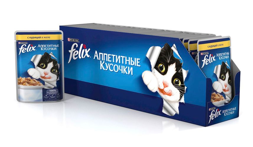 Felix "Аппетитные кусочки" - это совершенно особенный корм для кошек. У него такой аппетитный вид и аромат, словно его приготовили вы сами. Felix "Аппетитные кусочки" создан по специально разработанной рецептуре: это нежнейшие кусочки с мясом или рыбой, покрытые сочным желе. Ваш кот будет готов есть такую вкуснятину хоть каждый день - на завтрак, обед и ужин.