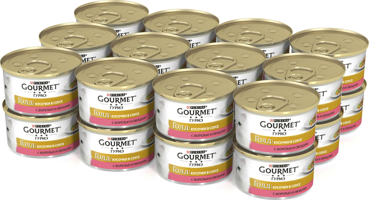 GOURMET Gold® – это золотая коллекция вкусов и текстур, такие как террин по-французски, паштет, нежные биточки и другие роскошные блюда, перед которыми не устоит даже самая взыскательная кошка. мясо и субпродукты, злаки, рыба и продукты переработки рыбы (форель), овощи, сахара, минеральные вещества.