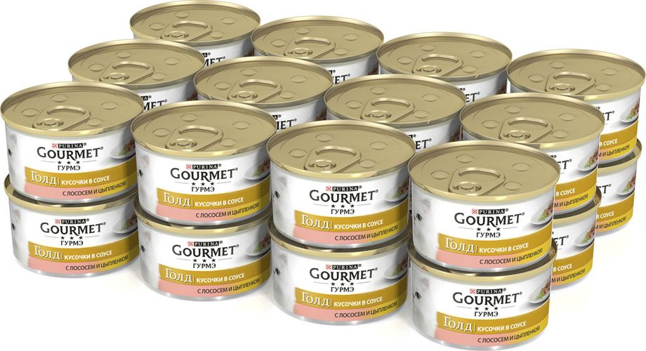 GOURMET Gold® – это золотая коллекция вкусов и текстур, такие как террин по-французски, паштет, нежные биточки и другие роскошные блюда, перед которыми не устоит даже самая взыскательная кошка. мясо и субпродукты (цыпленок), злаки, рыба и продукты переработки рыбы (лосось ), сахара, минеральные вещества, консерванты.