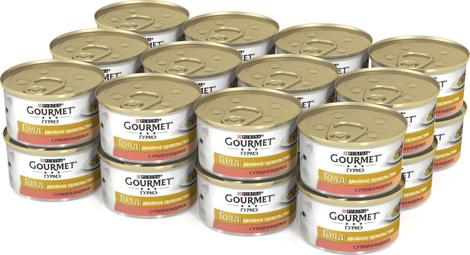 GOURMET Gold® – это золотая коллекция вкусов и текстур, такие как террин по-французски, паштет, нежные биточки и другие роскошные блюда, перед которыми не устоит даже самая взыскательная кошка. мясо и субпродукты (утка, индейка), экстракт растительного белка, злаки, рыба и продукты переработки рыбы, сахара, минеральные вещества, консерванты.
