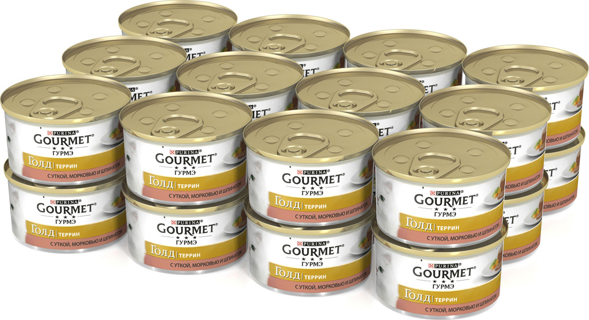 GOURMET Gold® – это золотая коллекция вкусов и текстур, такие как террин по-французски, паштет, нежные биточки и другие роскошные блюда, перед которыми не устоит даже самая взыскательная кошка. мясо и мясные субпродукты (утка), овощи (морковь, шпинат) минеральные вещества, сахара, продукты переработки растительного сырья, витамины, консерванты.