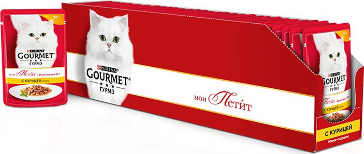 Настоящие гурманы знают, что ничто не сравнится с восхитительным вкусом только что приготовленного блюда. Именно тогда изысканное сочетание превосходных ингредиентов раскрывается наиболее ярко. Ваши питомцы достойны вкусного питания - аппетитного обеда из нежнейших кусочков мяса из только что открытого пакетика. Особый формат упаковки Gourmet "Mon Petit" (50 г) удобен тем, что содержит порцию оптимального размера. Это позволяет вашему пушистому гурману доесть все сразу до последнего кусочка, наслаждаясь пиком вкуса великолепного продукта. Больше не придется хранить остатки в холодильнике и на следующий день уговаривать своего питомца все это съесть. Ведь он, как настоящий гурман, понимает, что вкусно только то, что сразу же оказывается у него на тарелке.