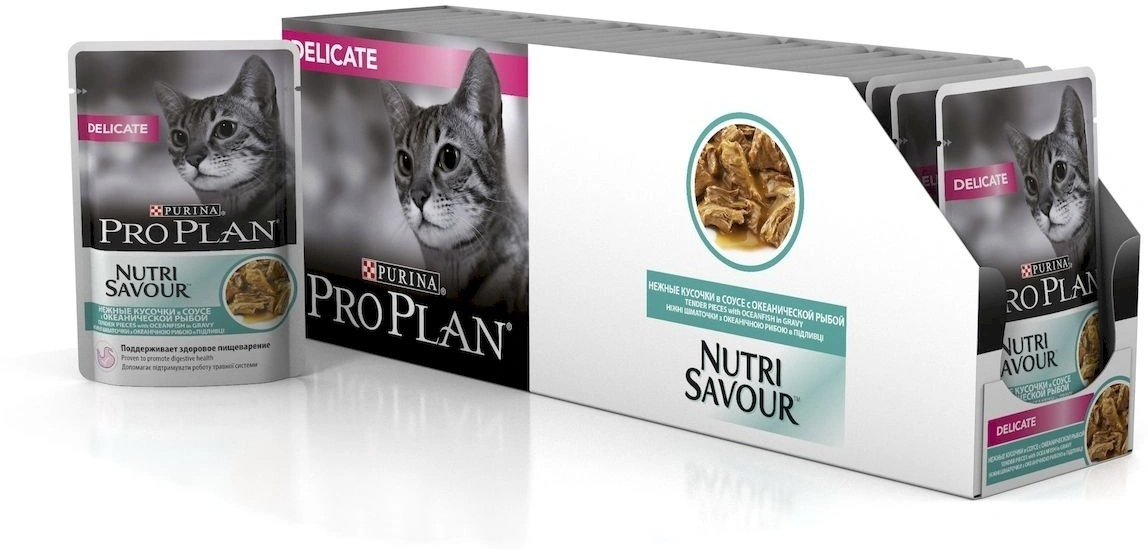 Консервы Pro Plan "Nutri Savour" помогают уменьшить кожные реакции, связанные с пищевой непереносимостью. Нежные кусочки в пикантном соусе очень привлекательны для кошек благодаря запатентованной технологии. Доказано: способствует улучшению пищеварения благодаря содержанию инулина, пребиотика, который помогает сбалансировать кишечную флору кошек с повышенной чувствительностью. Состав: мясо и продукты переработки мяса, экстракты растительных белков, рыба и продукты переработки рыбы (в том числе океаническая рыба 4%), растительные и животные жиры, продукты переработки растительного сырья, красители, сахара, витамины.
