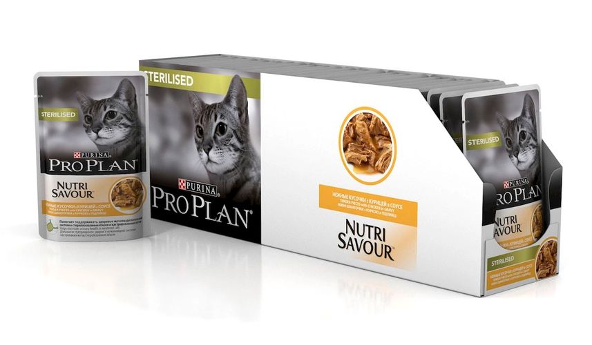 Консервы Pro Plan "Nutri Savour" помогает поддерживать здоровье мочевыделительной системы у кастрированных котов и стерилизованных кошек. Способствует поддержанию оптимального веса тела кошки. Помогает поддерживать естественную защиту организма благодаря содержанию антиоксидантов, таких как витамин Е. Нежные кусочки в пикантном соусе обладают приятным вкусом благодаря запатентованной технологии производства департамента Purina компании Nestle. Состав: мясо и мясные субпродукты (в том числе курица 4%), экстракты растительных белков, рыба и рыбные субпродукты, субпродукты растительного происхождения, минеральные вещества, растительные и животные жиры, красители, различные сахара, витамины.