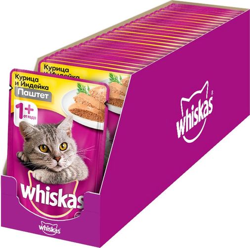 Полнорационный сбалансированный корм для кошек "Whiskas" приготовлен из тщательно отобранного мяса. Он содержит все витамины и минералы, необходимые для ежедневного питания вашей кошки. В рацион домашнего любимца нужно обязательно включать консервированный корм, ведь его главные достоинства - высокая калорийность и питательная ценность. Консервы лучше усваиваются, чем сухие корма. Также важно, чтобы животные, имеющие в рационе консервированный корм, получали больше влаги.