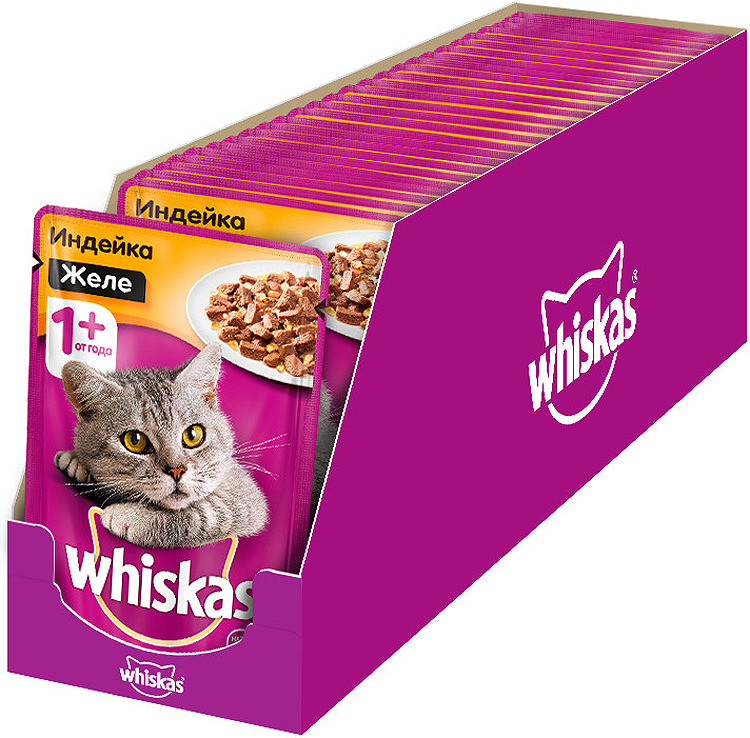 Это сбалансированный рацион, приготовленный именно так, как любит Ваша кошка. Отборные мясные кусочки с индейкой в аппетитном желе придутся по вкусу Вашей любимице. Кроме того, Whiskas® содержит все необходимое, чтобы еда Вашей кошки была не только вкусной, но и полезной. Whiskas для взрослых кошек это:
