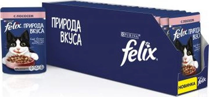 Влажный корм для взрослых кошек Felix Nature Природа вкуса, с лососем. Уникальная рецептура приготовления влажного корма для кошек Феликс Природа вкуса с лососем в аппетитном соусе понравится даже привередливым питомцам.