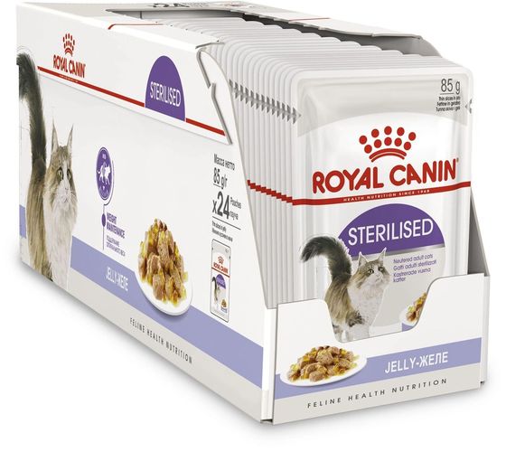 Консервы Royal Canin "Sterilised" - полноценное сбалансированное питание для взрослых стерилизованных кошек. Помогает сохранить идеальный вес стерилизованной кошки благодаря точно подобранному содержанию энергии. Оптимальное соотношение белков, жиров и углеводов способствует долговременному сохранению вкусовой привлекательности корма. Поддерживает здоровье мочевыделительной системы.