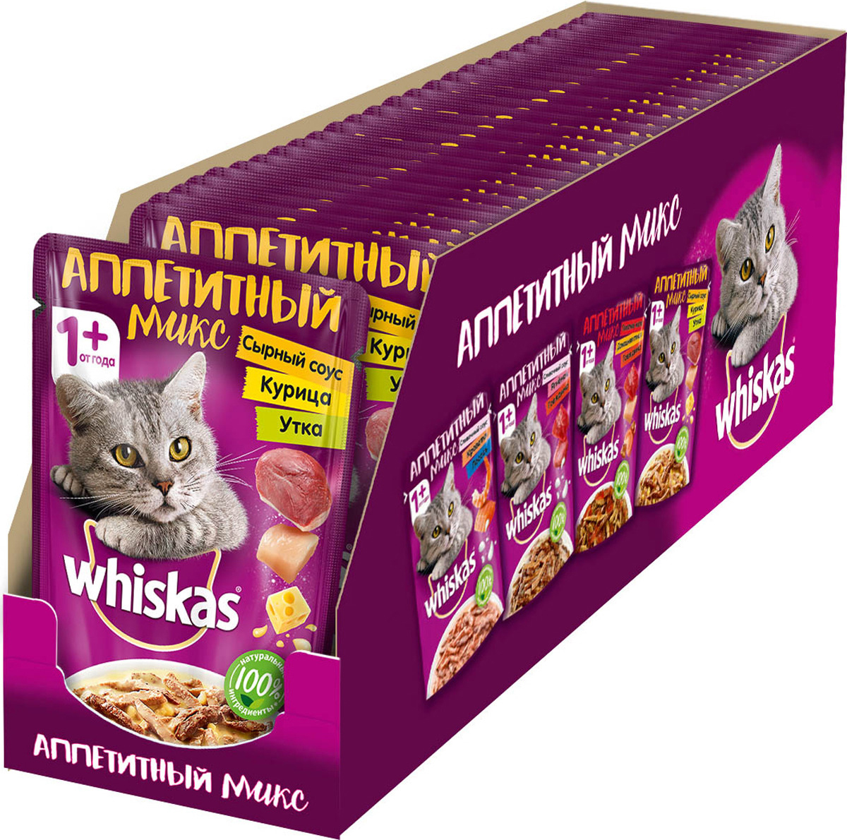 Курица, утка и нежный сырный соус — сразу все, о чем мечтала ваша кошка, в новой коллекции сбалансированных блюд WHISKAS® Аппетитный микс. В каждом из паучей содержится три основных ингредиента: разные виды мяса или морепродуктов смешиваются в нежнейшем соусе или желе, чтобы вы воплощали мечты своих любимцев. WHISKAS® для взрослых кошек это: