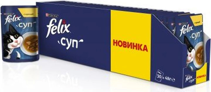 Корм влажный суп для взрослых кошек с курицей FELIX 48 г поможет разнообразить рацион домашнего питомца. В состав продукта входят только натуральные продукты – крупные кусочки мяса птицы, приготовленные в ароматном соусе. Большое количество жидкости и отсутствие злаковых культур позволяет корму легко усваиваться, не затрудняя пищеварение. Сбалансированное содержание белков, жиров, витаминов и полезных микроэлементов позволяет удовлетворить все потребности организма взрослых кошек. Продукт рекомендуется для домашних питомцев весом не менее 4 кг. При кормлении пища должна быть комнатной температуры.