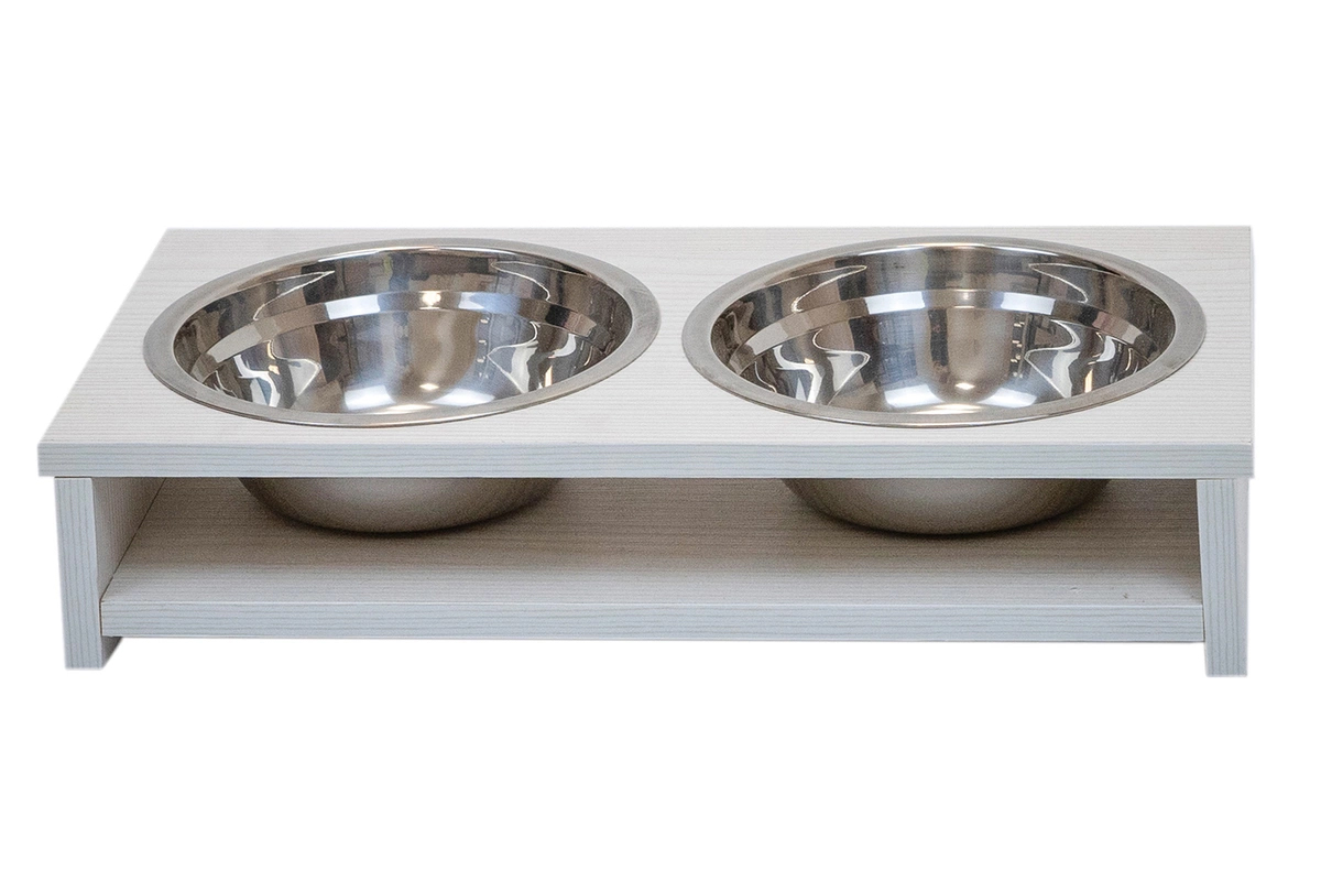 Кормушка с двумя мисками из пищевой нержавеющей стали, для небольших пород собак и кошек. Корпус кормушки изготовлен из ЛДМф, обладающего высокой влагостойкостью. Покрытие материала, имитирующее массив вудлайн, как облагораживает внешний вид, так и препятствует развитию на изделии грибков и плесени. Светлый оттенок вудлайн способен не только эффектно подчеркнуть геометрию, но и привнести роскошь и благородство в образ интерьера.