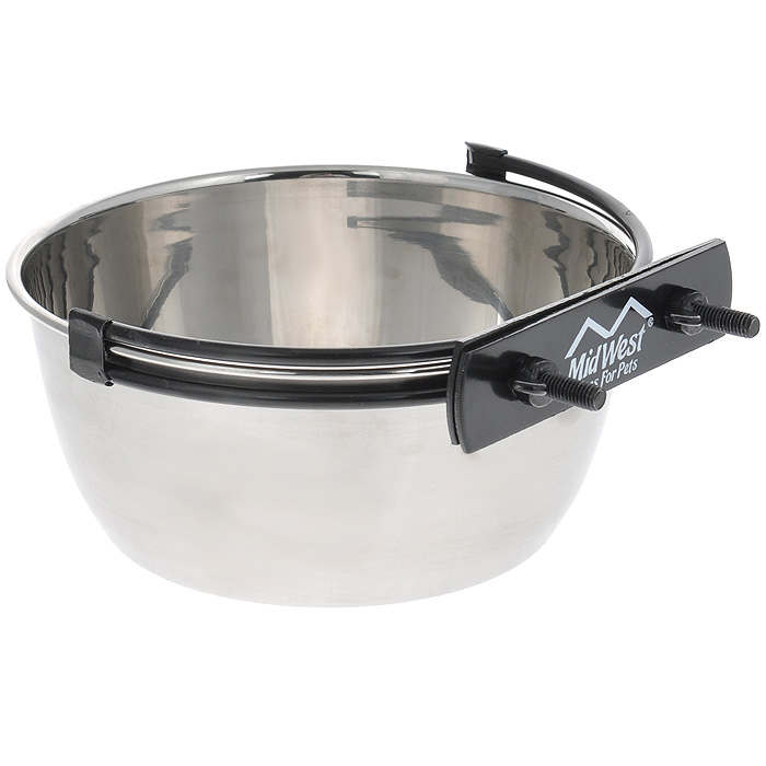 Практичная подвесная миска "Midwest" оснащена держателем для клеток и переносок. Крепежное устройство прочно фиксируется на решетку, миска легко устанавливается в держатель и не может быть извлечена или перевернута животным. Изготовлена из высококачественной нержавеющей стали. Объем: 1 л.