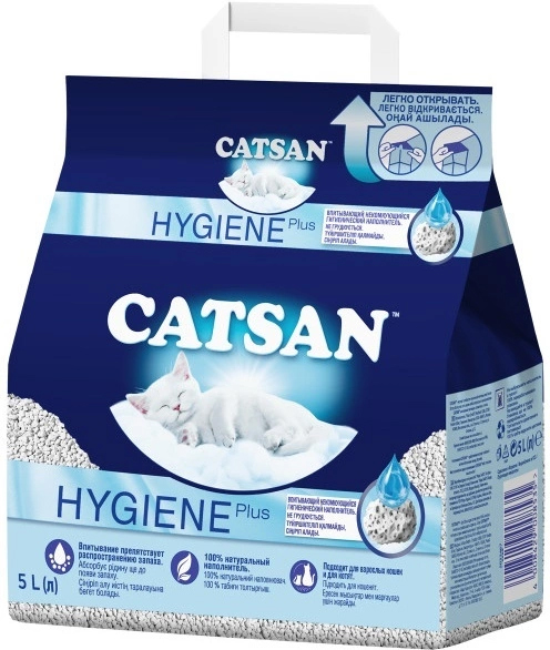 Впитывающий гигиенический наполнитель "Catsan Hygiene Plus" обеспечит вашей кошке всегда чистый туалет и устранит неприятный запах. Уникальные минеральные гранулы с микропорами, состоящие из очищенного мела и натурального кварцевого песка, впитывают влагу, словно губка. Поверхность гранул при этом остается сухой и чистой. Запатентованная технология предотвращает рост бактерий и появление неприятного запаха в три раза эффективнее, чем обычный наполнитель. Наполнитель "Catsan Hygiene Plus" не содержит асбеста и отбеливателей. Рекомендации по применению: Насыпьте наполнитель в кошачий лоток слоем около 5 см. Твердые отходы удаляйте из лотка по мере их появления, а также регулярно перемешивайте наполнитель совочком. Рекомендуется полностью заменять наполнитель в лотке хотя бы 1 раз в неделю. Перед насыпанием новой порции наполнителя следует тщательно промыть лоток горячей водой с мягким очищающим средством (желательно, без запаха). Прежде чем насыпать наполнитель, убедитесь, что лоток полностью высох. Если у вас в доме "теплые полы" (смонтирована система подогрева полов), рекомендуется помещать под лоток изоляционный коврик. Это поможет избежать образования неприятных запахов от кошачьего туалета, которые могут появиться при нагреве влаги, которую впитали в себя гранулы наполнителя.