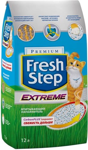 Наполнитель для кошачьего туалета Fresh Step "Extreme" изготовлен из высококачественной глины с высокой абсорбирующей способностью в сочетании с легким весом. Наполнитель содержит специальные компоненты - нейтрализаторы запаха, которые контролируют запахи между посещениями лотка и уничтожают причину их возникновения. К традиционному впитывающему наполнителю был добавлен специальным образом обработанный активированный уголь, который надежно поглощает и удерживает запах в лотке, а также помогает предотвратить рост бактерий, вызывающих неприятный запах.