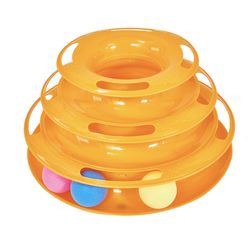 AlorColor Развивающая игрушка для кошек башня трек интерактивный трехъярусный с 3 разноцветными мячами, прочная устойчивая игрушка