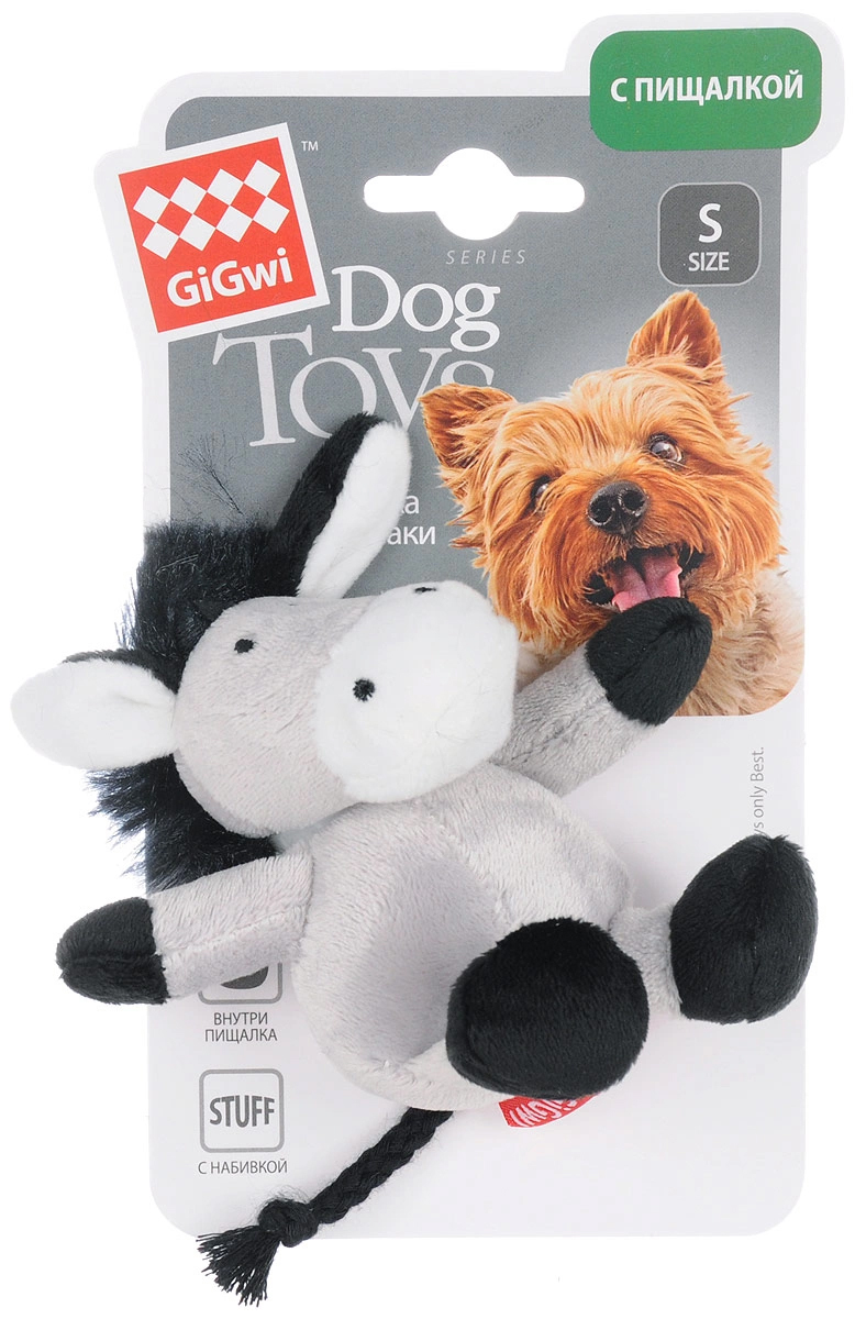Игрушка для собак GiGwi "Ослик" с набивкой выполнена из плотного текстиля. Игрушка подходит для активной игры. Нетоксичный материал не ранит зубы. Игрушка оснащена пищалкой.