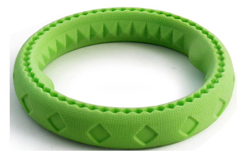 Оригинальная игрушка в форме кольца выполнена из термопластичной резины и подходит для собак крупных пород. Прочная и в то же время обладающая мягкой структурой, она станет идеальным решением для четвероногих питомцев. Изделие послужит хорошим "напарником" для игры и позаботится о здоровье зубов животного.