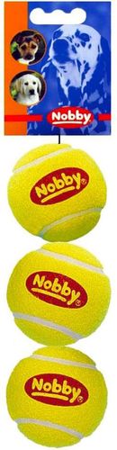 Набор игрушек для животных Nobby состоит из трех теннисных мячей, изготовленных из резины. Игрушки помогут занять щенка во время смены зубов, а расшалившаяся взрослая собака не будет грызть мебель, обувь и другие нужные вещи.