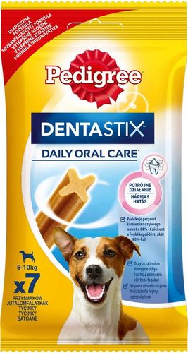 Лакомство Pedigree "Denta Stix" выполнено в виде жевательных палочек и предназначено для собак маленьких пород (весом 5 - 10 кг). Это прекрасное лакомство и средство для чистки зубов. Жевательное лакомство не подходит для щенков моложе 4-х месяцев.