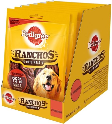 PEDIGREE Ranchos – это мясное лакомство, котороеидеально подходит для того, чтобы побаловать вашего любимца.Технология изготовления PEDIGREE RANCHOS Originals позволяет сохранить оригинальный мясной аромат и вкус, который собаки обожают.