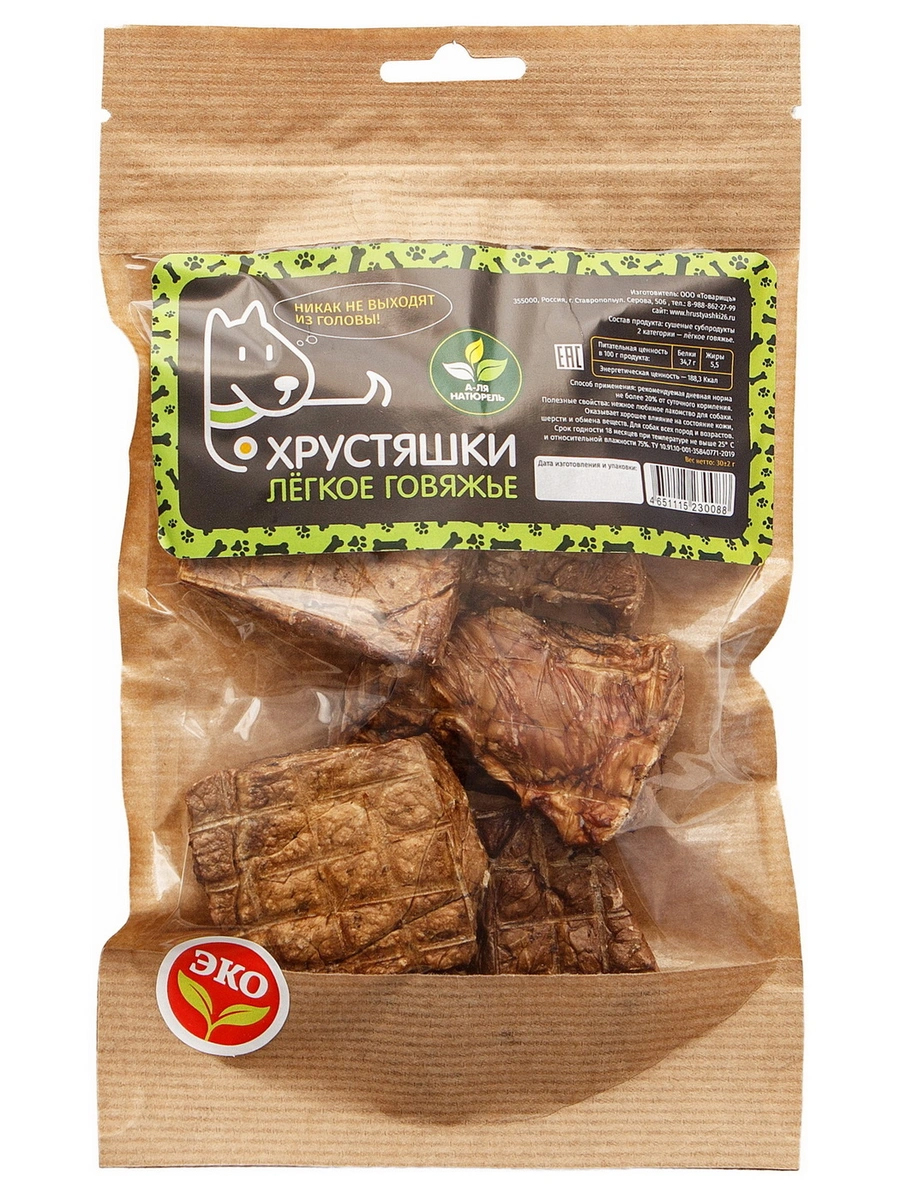 Состав: Сушеные субпродукты 2 категории - легкое говяжье
