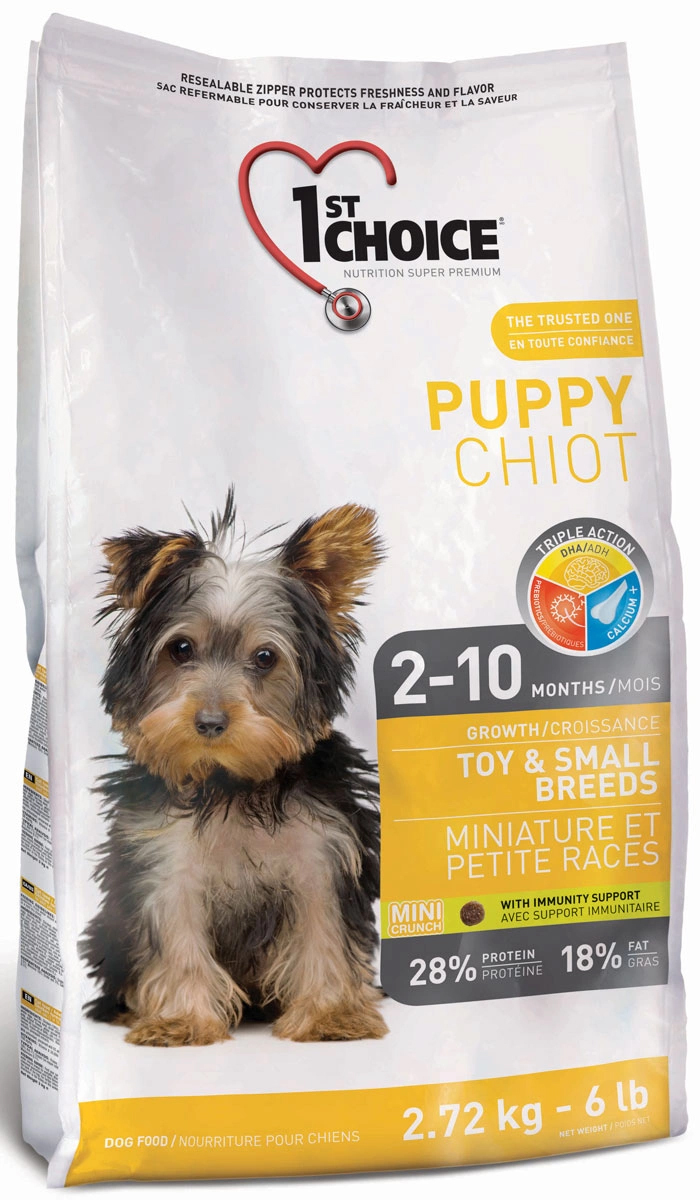 Корм 1st Choice "Puppy" разработан специально для щенков собак миниатюрных и мелких пород в возрасте от 2 до 10 месяцев.Формула содержит необходимое количество протеинов, витаминов и минералов для оптимального роста и развития.
