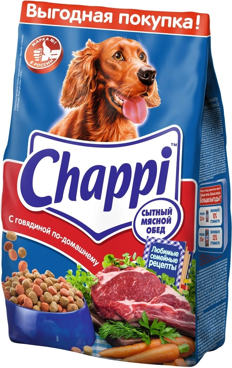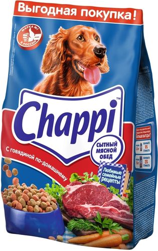 Корм "Chappi" идеально подходит для вашего любимца как надежный источник жизненных сил.