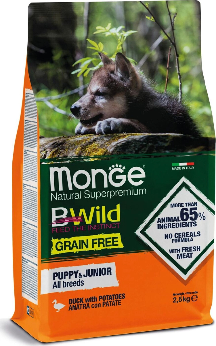 Полнорационный корм для щенков всех пород с уткой и картофелем, не содержит зерновых культур. Это питательный, высокоусваиваемый корм с высокой вкусовой привлекательностью.