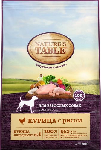 Nature`s Table™. Сухой полнорационный корм, предназначенный специально для взрослых собак всех пород старше 1 года.