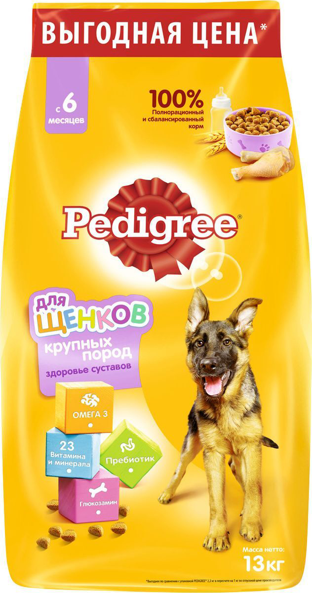 Сухой корм для щенков "Pedigree" - высококалорийный и хорошо усвояемый рацион, созданный с учетом потребностей щенков в период наиболее интенсивного роста. Подходит для щенков крупных пород в возрасте от 6 месяцев.