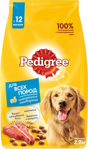 Сухой рацион "Pedigree" - это полезный и вкусный корм, приготовленный по специальным рецептам с учетом физиологических потребностей собак.