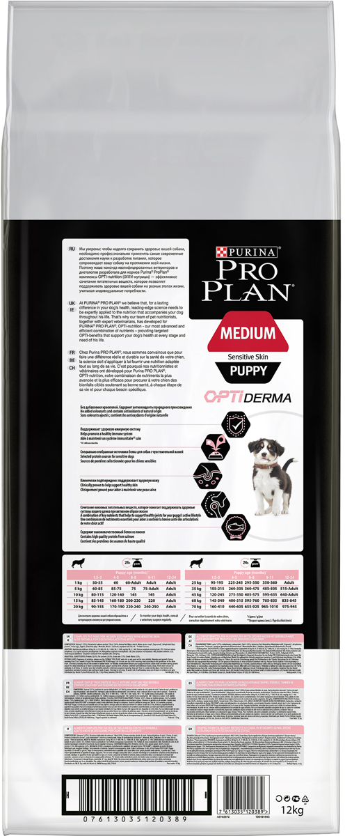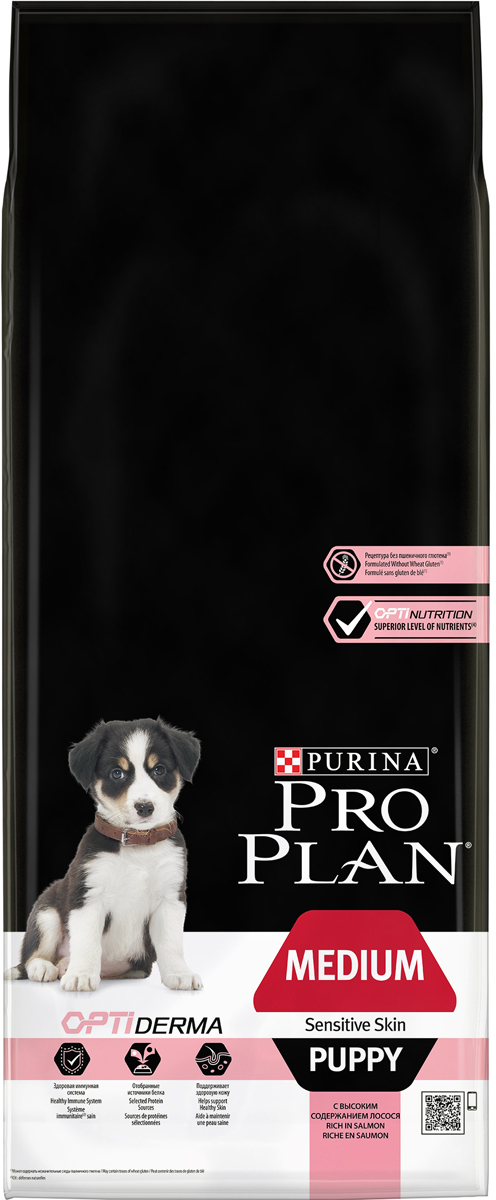 Сухой корм Pro Plan "Puppy Medium Sensitive Skin" - это полнорационное питание для щенков средних пород с чувствительной кожей. Особенности корма: