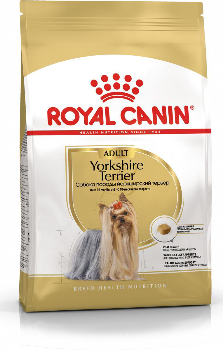 Корм сухой Royal Canin "Yorkshire Terrier Adult" - полнорационный корм для собак породы йоркширский терьер в возрасте от 10 месяцев. Йоркширский терьер — это сказочное создание, которое очаровывает с первой минуты знакомства с ним. Тоненькие, хрупкие и изящные йорки в силу своей физиологии нуждаются в максимальном поступлении в организм аминокислот, необходимых для развития шерсти и ее быстрого роста. Многие корма для йорков имеют крокеты слишком крупного размера, тогда как продукция Royal Canin Yorkshire Terrier Adult разработана специально для небольших челюстей этих собак.