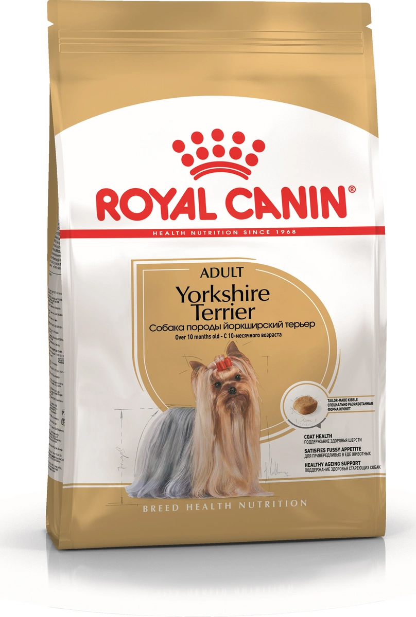 Royal Canin "Yorkshire Terrier Adult" - полнорационный сухой корм для собак породы йоркширский терьер в возрасте от 10 месяцев. Йоркширский терьер - это сказочное создание, которое очаровывает с первой минуты знакомства с ним. Тоненькие, хрупкие и изящные йорки в силу своей физиологии нуждаются в максимальном поступлении в организм аминокислот, необходимых для развития шерсти и ее быстрого роста. Многие корма для йорков имеют крокеты слишком крупного размера, тогда как продукция Royal Canin Yorkshire Terrier Adult разработана специально для небольших челюстей этих собак.